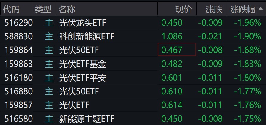 每经记者 叶峰 每经编辑 肖芮冬 光伏概念股早盘持续调整,通威股份、晶澳科技跌超3%,阳光电源、德业股份跌超2%。 受盘面影响,光伏、科创新能源相关ETF跌近2%。 有券商表示,2025年全球新增光伏 ...