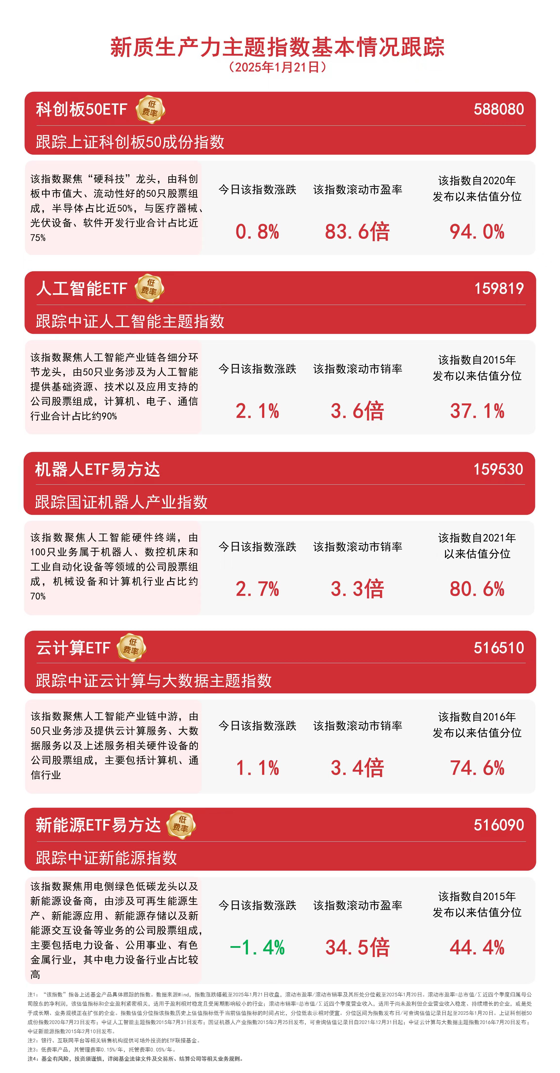 截至收盘,国证机器人产业指数上涨2.7%,中证人工智能主题指数上涨2.1%,中证云计算与大数据主题指数上涨1.1%,上证科创板50成份指数上涨0.8%,中证新能源指数下跌1.4%。 工信部今日表示,我国2024年在新型储能、微纳制造、人形机器人、具身智能机器人等领域新布局5家国家级制造业创新中心,累计达到33家,突破关键共性技术672项,实现技术成果转化690项,孵化企业182家,大力推动产业科技创新,培育发展新质生产力。 |