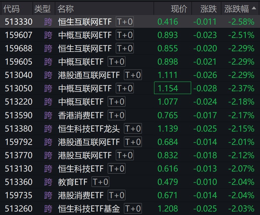 每经记者 叶峰 每经编辑 肖芮冬 港股早盘走弱,恒生科技指数跌超2%,金山云跌超7%,哔哩哔哩-W跌超5%,京东健康、东方甄选跌超4%,美团-W、阿里健康跌超3%。 受盘面影响,恒生互联网、中概互联网等港股相关ETF普跌逾2%。 有券商表示,展望2025年一季度,1月至春节前仍处于国内政策面和业绩披露的空窗期,且外部环境不确定性尚存,仍可能阶段性压制港股投资者情绪;而春节后,随着市场的政策预期再度得到提振,港股有望迎来新一轮的估值修复行情。此外,港股的权重标的也即将从2月底开始披露年报,考虑到近期业绩预期的上修,其对基本面也会提供支撑。 |