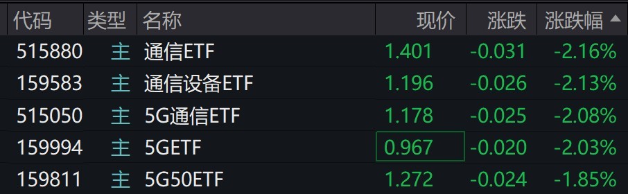 每经记者 叶峰 每经编辑 肖芮冬 通信概念股午后走低,中兴通讯跌超5%,兆易创新、光迅科技跌超4%,中际旭创、新易盛、传音控股、天孚通信跌超3%。 受盘面影响,通信、5G相关ETF跌逾2%。 有券商表 ...