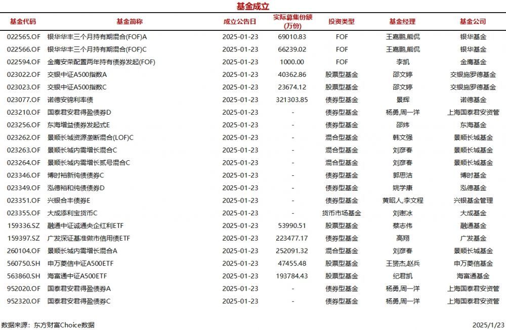 每经AI快讯,据东方财富Choice数据统计,今日共有22只基金公告成立(A/C类分开计算),包括9只债券型基金、5只股票型基金、4只混合型基金、3只FOF、1只货币市场基金。 ...