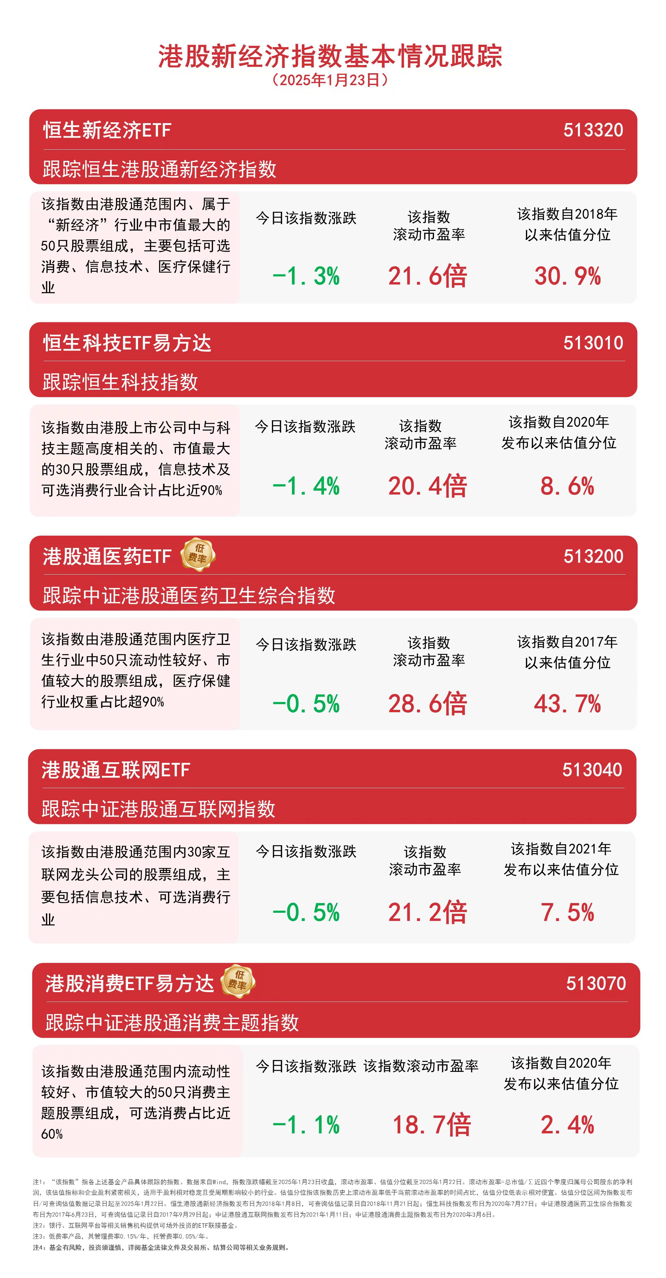 今日港股冲高回落,港股新经济指数一度集体涨超1%,盘面上,金融板块走高,科技、消费、医药板块回调。截至收盘,中证港股通医药卫生综合指数下跌0.5%,中证港股通互联网指数下跌0.5%,中证港股通消费主题指数下跌1. ...