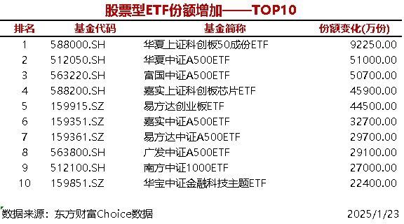 每经AI快讯,据东方财富Choice数据统计,昨日共19只股票型ETF当日份额增加超1亿份,华夏上证科创板50成份ETF增加9.23亿份,华夏中证A500ETF增加5.1亿份。