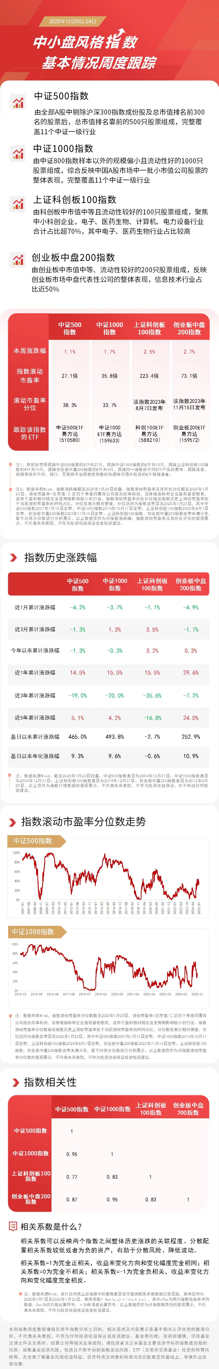 本周中证500指数上涨1.1%,中证1000指数上涨1.7%,科创100指数上涨2.5%,创业板中盘200指数上涨2.7%。 据工信部披露,2024年规上工业中小企业增加值比上年增长6.9%,高于大型企业2.8个百分点,中小企业经济运行稳中 ...