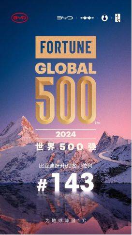 2024年世界500强排行榜中,比亚迪凭借强大的实力和优异的表现第三次上榜,从2023年的第212位提升到第143位,彰显出比亚迪不断提升的国际影响力。 2024年世界500强排行榜:比亚迪跃升至第143位