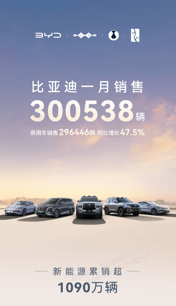 近日,比亚迪公布的 1 月销量数据成为了汽车行业热议的焦点,比亚迪凭借 300538 辆的销量成绩,再次稳坐中国品牌汽车市场销冠宝座。