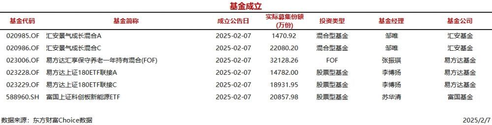 每经AI快讯,据东方财富Choice数据统计,今日共有6只基金公告成立(A/C类分开计算),包括3只股票型基金、2只混合型基金、1只FOF。