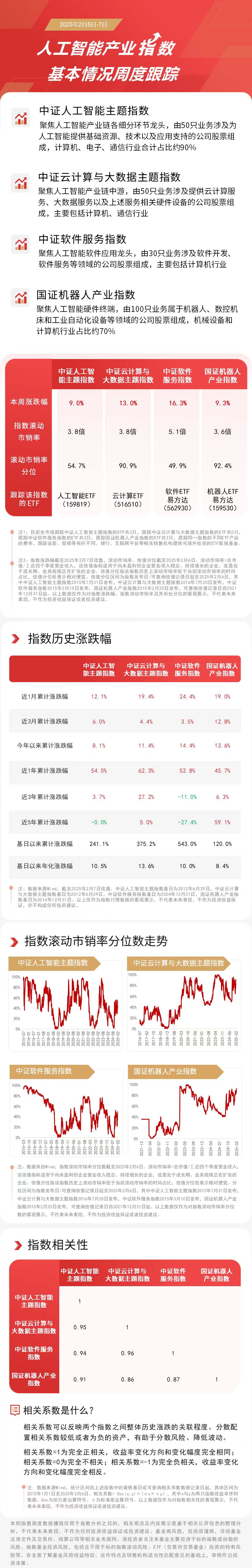 本周中证软件服务指数上涨16.3%,中证云计算与大数据主题指数上涨13.0%,国证机器人产业指数上涨9.3%,中证人工智能主题指数上涨9.0%。 中信证券认为,DeepSeek新一代模型的发布意味着AI大模型的应用将逐步走向普及,加速AI应用全面落地;同时,其有望开启全新的Scaling Law,模型重心逐步从预训练切换到强化学习、推理阶段,助力算力需求持续增长。 |