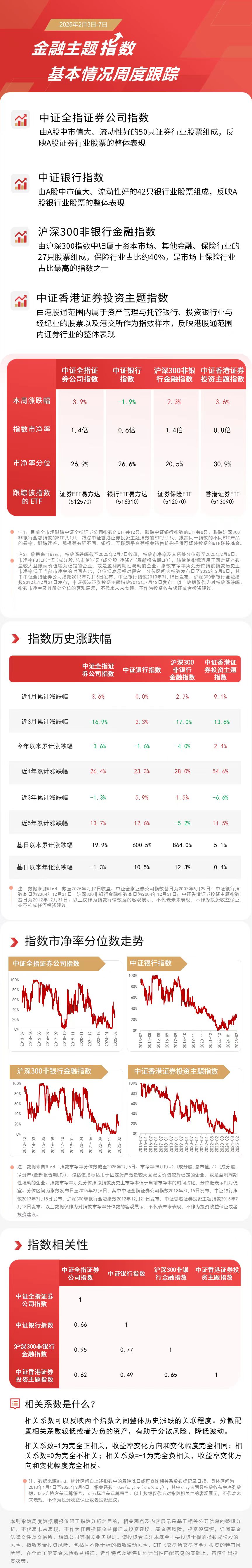 本周券商板块延续涨势,银行板块回调。指数方面,中证全指证券公司指数上涨3.9%,香港证券指数上涨3.6%,沪深300非银行金融指数上涨2.3%,中证银行指数下跌1.9%。 |