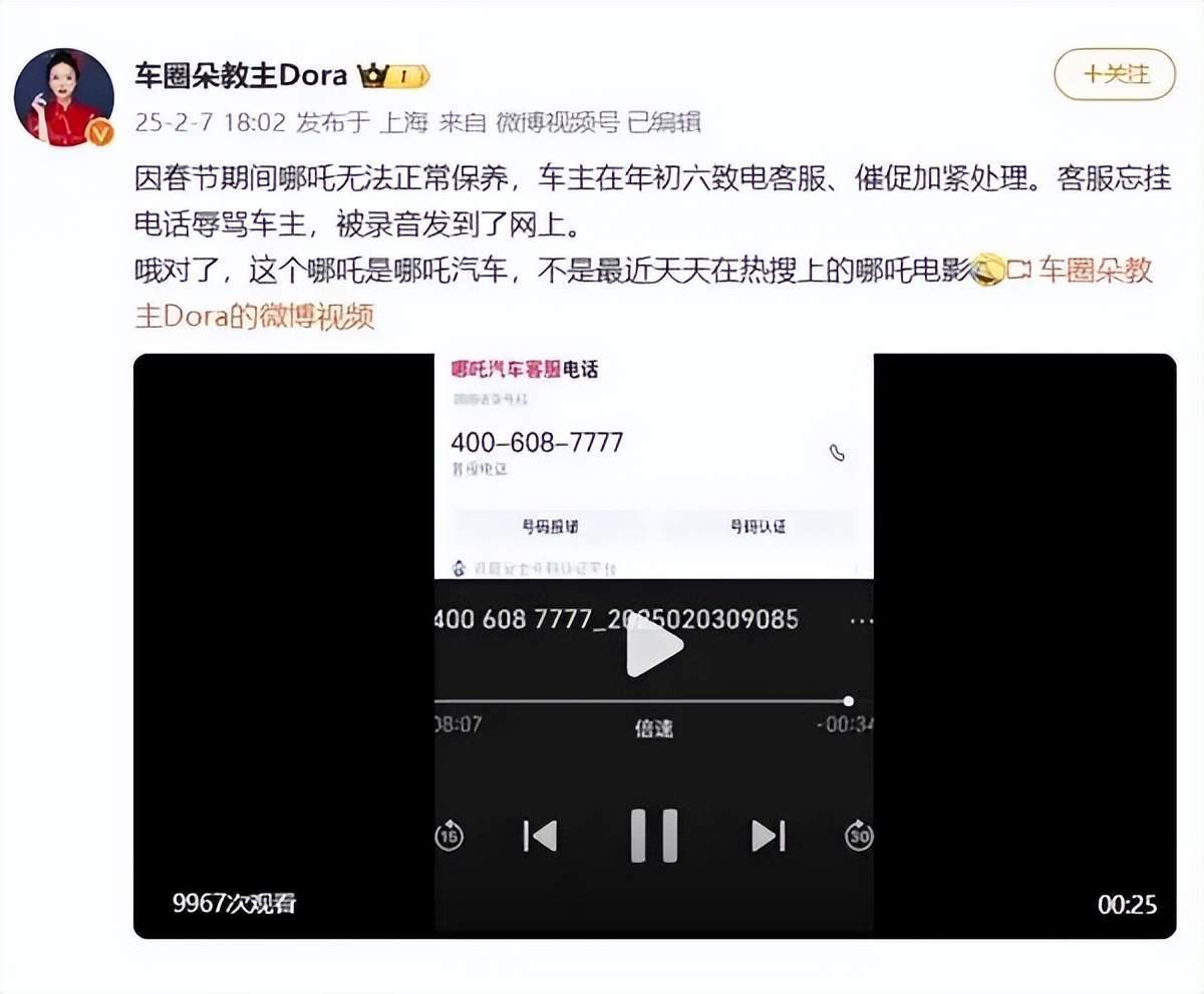哪吒汽车一位车主因无法正常保养,拨打客服电话催促厂家处理,客服接完电话后忘记挂机,车主听到客服用不雅词语骂人。客服在电话中说:“一直问我怎么处理,处理你奶,我怎么知道怎么处理?烦死了。” ...