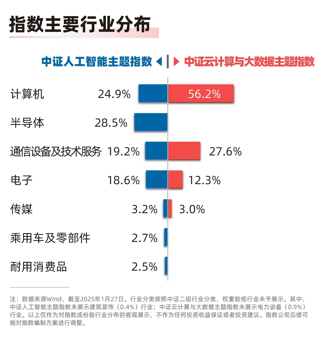 DeepSeek概念再度走强,截至10:30,中证人工智能主题指数上涨1.6%,中证云计算与大数据主题指数上涨2.5%。 近日,华为昇腾、沐曦、天数智芯等多家国产AI芯片企业相继宣布适配或上架DeepSeek模型服务,同时中国电信、中国联通、中国移动三大运营商也纷纷宣布全面接入DeepSeek,加速实现在多场景、多产品中的应用。 中信证券表示,DeepSeek为国产AI芯片厂商提供了技术验证和商业化机会,还帮助云计算公司及运营商实现服务升级与收入增长,其低成本、高性能的特性正在重塑全球AI产业链格局,推动中国从“算力追随者”向“生态主导者”转型。 DeepSeek朋友圈“再扩容”,人工智能、云计算等相关产业指数受到关注。中证人工智能主题指数聚焦AI产业链各细分环节龙头,中证云计算与大数据主题指数聚焦AI产业链上游的算力和下游的软件应用。人工智能ETF(159819)、云计算ETF(516510)的管理费率均为0.15%/年,可助力投资者低成本布局AI产业龙头。 |