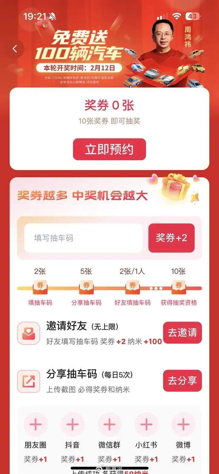 360集团创始人兼董事长周鸿t强调他免费送车是有诚意的,而且是正儿八经、真心诚意地抽奖送人,且有国家有关部门的监督和指导。周鸿t在直播中还表示,员工和员工家属都不能参加送车活动。此前,周鸿t宣布将免费送出10 ...