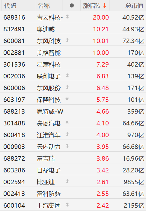 格隆汇2月11日|A股市场自动驾驶概念股集体走强,其中,青云科技20CM涨停,奥迪威涨超10%,东风科技(600081)、美格智能(002881)10CM涨停,