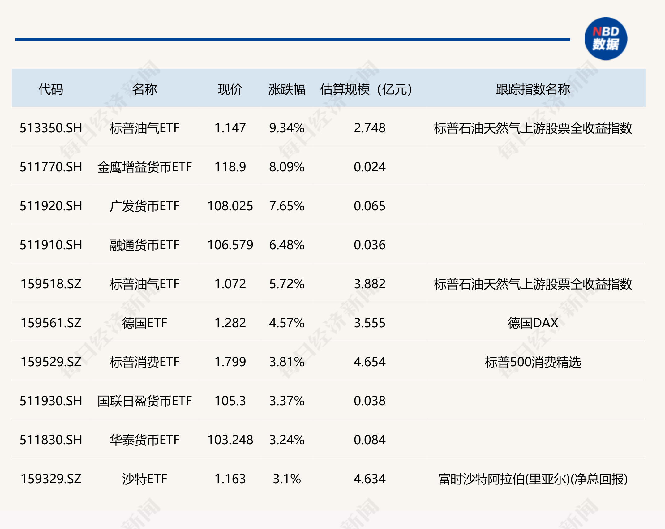每经记者 叶峰 每经编辑 彭水萍 市场全天震荡调整,创业板指领跌。从板块来看,DeepSeek概念股走势分化,传媒影视股逆势大涨,黄金股集体走强。下跌方面,芯片股展开调整。 ETF涨跌幅方面,标普油气ETF涨超9%,多只货币型ETF涨超6%。 有券商认为,美国作为全球最大的原油生产国,其政府政策的调控对于原油价格的影响较为明显,且供给侧的变化或将持续较久,特朗普政府在能源方面的政策可能会带来原油价格的下跌且较长时间处于下行期间。 此外,货币型ETF早盘再度大涨,但多只在午后集体停牌。基金公司特此提示投资者关注二级市场交易价格溢价风险,投资者如果盲目投资,可能遭受重大损失。 针对货币ETF的异动,投资者可参考以下建议: 理性分析原因:货币ETF涨停多为短期现象,需区分是市场情绪、规则漏洞还是产品本身问题。 关注净值与折溢价:货币ETF的真实价值由其净值(通常每日公布)决定,若场内价格大幅高于净值(溢价),需警惕后续回调风险。 避免盲目跟风:货币ETF的核心功能是现金管理工具,长期持有收益稳定,但短期炒作可能导致亏损。 下跌方面,新经济ETF、港股汽车ETF跌逾4%。 |