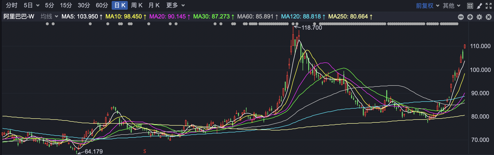 每经记者 曾子建 每经编辑 肖芮冬 2月12日早盘,港股市场继续走强。截至发稿前,恒生指数报21435点,上涨0.66%;恒生科技指数一度涨超1%,最高报5240点,上涨1.85%。 公司方面,阿里宝宝成为市场焦点,今日早间高开4%,最高报111港元,最大涨幅达5.82%。消息面,苹果和阿里巴巴据称将合作为中国iPhone用户开发AI功能。 其他方面,小米集团涨超3%,快手、京东涨超1%,内房股普遍上涨,富力地产涨超2%;半导体概念股齐涨,中芯国际涨超3%。此外,宁德时代正式向香港联交所递交发行境外上市外资股(H股)并在香港联交所主板挂牌上市的申请, 跨境ETF方面,教育ETF涨近4%、新经济ETF涨超2%。此外,港股科技30ETF、港股通50ETF、港股消费ETF涨超1%。创新药板块走低,港股创新药50ETF、恒生创新药ETF等跌近0.5%。 |