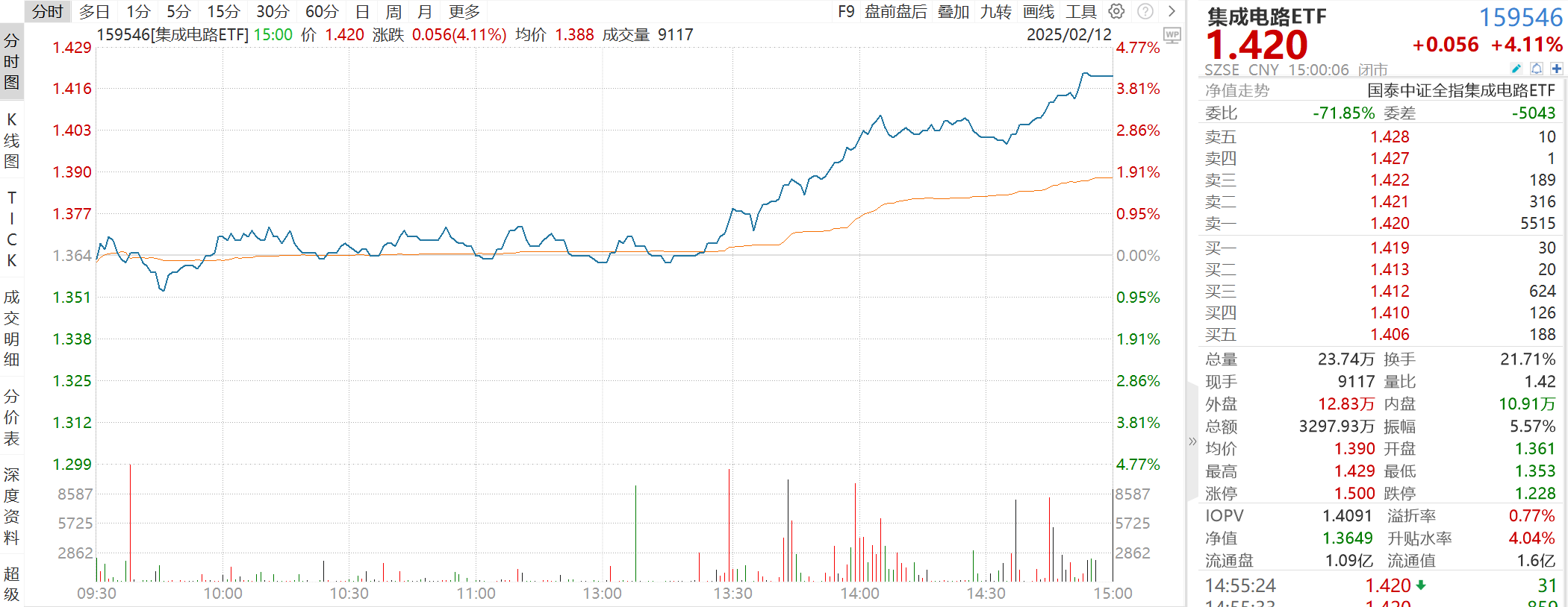 每经编辑 肖芮冬 周三(2月12日),A股三大指数今日集体反弹,截至收盘,沪指涨0.85%,深成指涨1.43%,创业板指涨1.81%。全市场成交额17118亿元,较上日放量339亿元。DeepSeek、影视院线、阿里巴巴概念股早盘集体走强,半导体板块午后震荡拉升、带动集成电路相关个股走强。 集成电路ETF(159546)收盘大涨4.11% 【上涨原因分析】比亚迪推动智驾平权利好车载电子元器件;苹果将合作阿里为中国iPhone用户开发AI功能利好产业链。 昨日,比亚迪举行“天神之眼开创全民智驾时代”智驾战略发布会,比亚迪集团总裁王传福表示,2025年将成为全民智驾的元年,比亚迪全系车型都将搭载高阶智驾技术,超市场预期。智驾平权对产业链的感知、芯片等环节带来积极影响。智驾的持续渗透以及供应链的安全自主可控均为产业生态大趋势,预计将进一步推动激光雷达、光学、CIS、等车载芯片、传感器等电子器件的发展。 苹果国内AI或牵手阿里入华在望,集成电路产业有望迎接AI端侧及苹果创新大周期。据The Information报道,苹果将与阿里巴巴合作,为中国的iPhone用户开发人工智能功能。而近日苹果也向开发者发送邮件,宣布将于北京时间3月25日在上海举行“利用Apple智能的力量”开发者活动,暗示中国版Apple智能(Apple Intelligence)AI功能即将上线, 此外,半导体板块方面,中芯国际2025年业绩和资本支出指引超预期,给板块带来信心。公司预计2025年全年销售收入增幅高于同业平均值,将2025年全年CAPEX预期上修至同比基本持平(2024年为76.7亿美元),打消市场此前对2025年CAPEX下降的担忧。 【后市展望】半导体行业处于上行周期,DeepSeek热潮有望推动产业链发展;国产半导体自主可控有望加速。 目前半导体行业仍处于上行周期,全球半导体月度销售额继续同比增长。根据SIA的数据,2024年全球半导体销售额首次超过6000亿美元,达到6276亿美元,同比增长19.1%,预计2025年将继续保持两位数增长。WSTS预计2025年全球半导体销售额将同比增长12.5%。SEMI预计2024年全球半导体设备销售额同比增长3.4%,2025年继续增长17%。 同时,Deepseek自上线后迅速在全球范围内获得关注,多家国产GPU厂商宣布已完成与其的适配,其中硅基流动和华为云联合推出基于昇腾云的Deepseek R1/V3推理服务,海光信息完成Deepseek R1/V3模型与海光DCU适配并正式上线,摩尔线程宣布成功部署Deepseek蒸馏模型推理服务等。通过与Deepseek等国产大模型的适配,国内GPU对复杂AI任务的支持能力将得到验证和优化,有助于国内AI包括算力在内的全产业链发展。 在AI算力大发展时代,集成电路产业链将在Deepseek等国内AI热潮催化和产业链自主可控的加速推进下,带来长期投资机会。近期中证全指集成电路指数指数估值相对较高,担心波动的投资者可以保持关注集成电路ETF(159546),考虑短期回避,调整时再重新买入即可。捕捉短期行情的波动可能会导致交易成本的上升,投资者可以根据自身的偏好,选择合适的交易策略。 风险提示:本速评已力求报告内容的客观、公正,但对这些信息的准确性和完整性不作任何保证,文中的观点、结论和建议仅供参考,相关观点不代表任何投资建议或承诺。行业或板块短期涨跌幅列示仅作为市场行情分析的辅助材料,仅供参考,不构成投资建议或承诺。我国基金运作时间较短,不能反映股市发展的所有阶段。基金管理人承诺以诚实信用、勤勉尽责的原则管理和运用基金资产,但不保证本基金一定盈利,也不保证最低收益。基金的过往业绩及其净值高低并不预示其未来业绩表现。基金管理人提醒投资人基金投资的“买者自负”原则,在做出投资决策后,基金运营状况与基金净值变化引致的投资风险,由投资人自行负担。基金有风险,购买过程中应选择与自己风险识别能力和承受能力相匹配的基金,投资需谨慎。投资人应当充分了解基金定期定额投资和零存整取等储蓄方式的区别。定期定额投资是引导投资人进行长期投资、平均投资成本的一种简单易行的投资方式。但是定期定额投资并不能规避基金投资所固有的风险,不能保证投资人获得收益,也不是替代储蓄的等效理财方式。 |