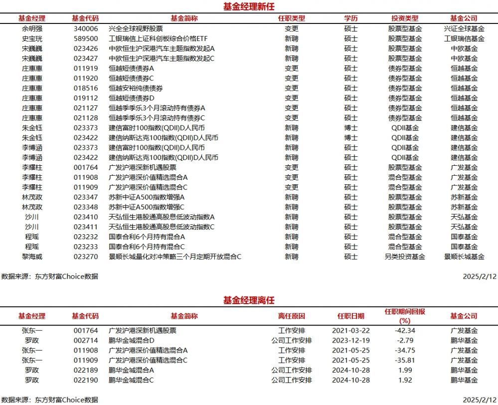 每经AI快讯,据东方财富Choice数据统计,今日新聘基金经理11人,涉及22只基金(A/C类分开计算),主要来自恒越基金、建信基金等公司。另外,今日有2位基金经理离任。 ![]() |