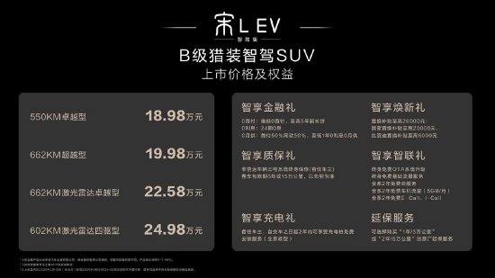 新浪科技讯2月12日晚间消息,B级猎装智驾SUV宋LEV智驾版正式上市,售价18.98万C24.98万元。此次宋LEV智驾版的最大亮点是高阶智驾能力的升级。此外,它还支持高快领航、全场景智能泊车辅助、全维安全辅助等功能 ...