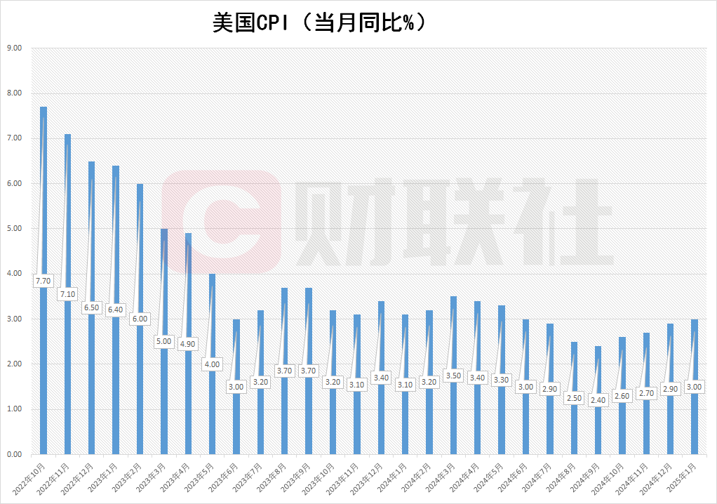 【美国1月CPI同比增长3% 高于市场预期】美国1月CPI同比增长3%,预估为增长2.9%,前值为增长2.9%;1月CPI环比增长0.5%,预估为增长0.3%,前值为增长0.4%。