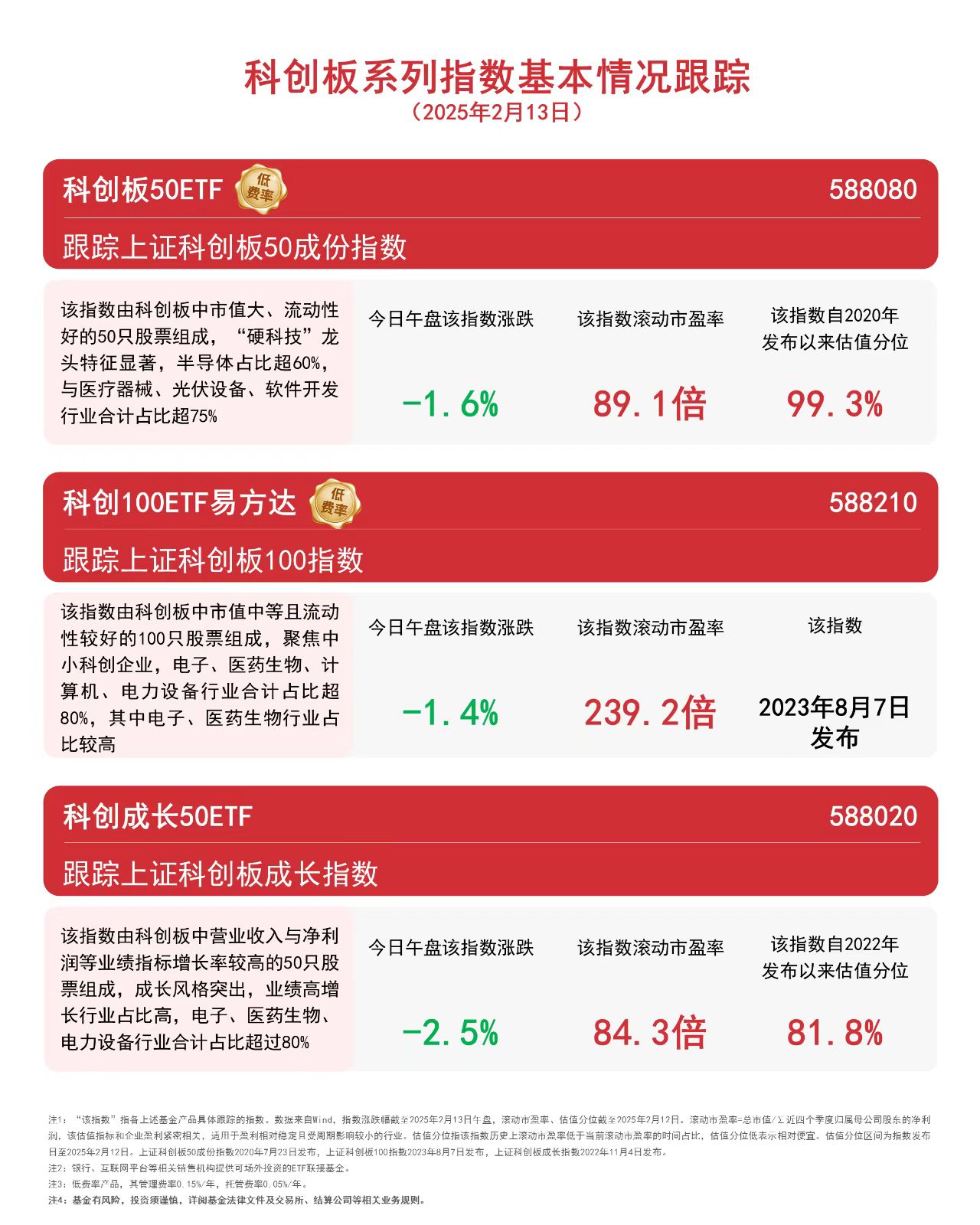 科创板系列指数早盘回调,DeepSeek、机器人、半导体等热门题材调整。截至午盘,科创100指数下跌1.4%,上证科创板50成份指数下跌1.6%,上证科创板成长指数下跌2.5%。 |