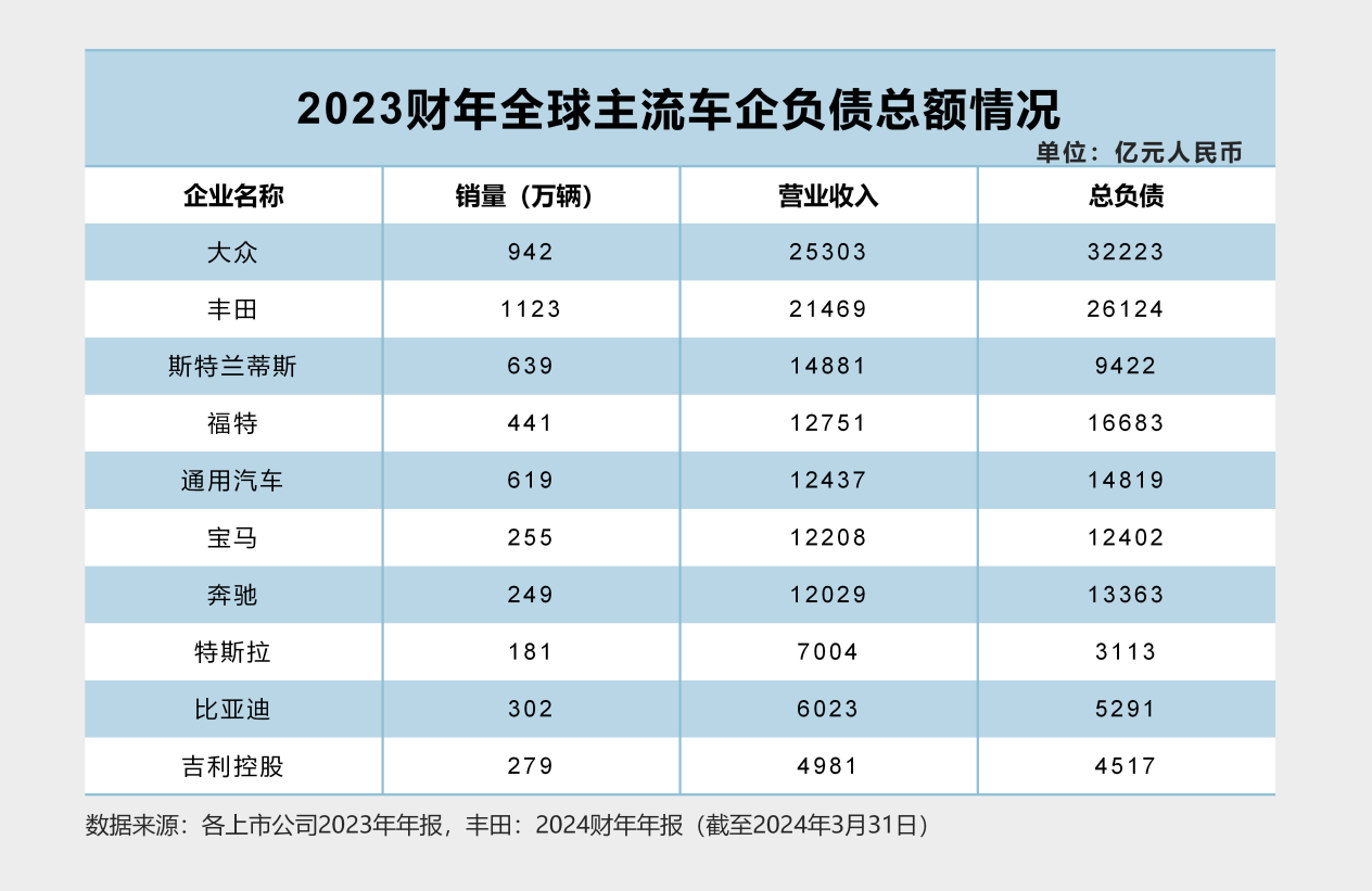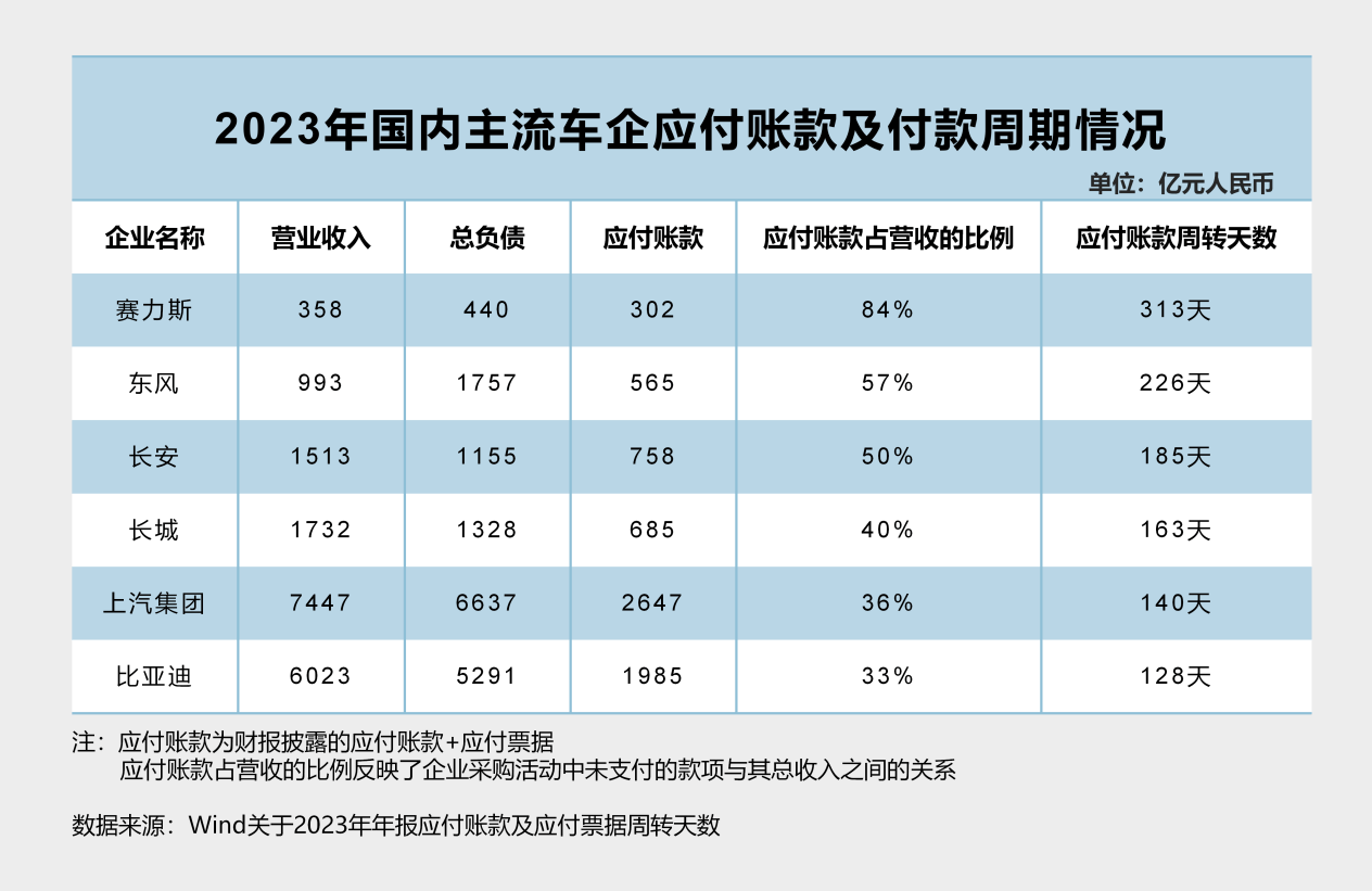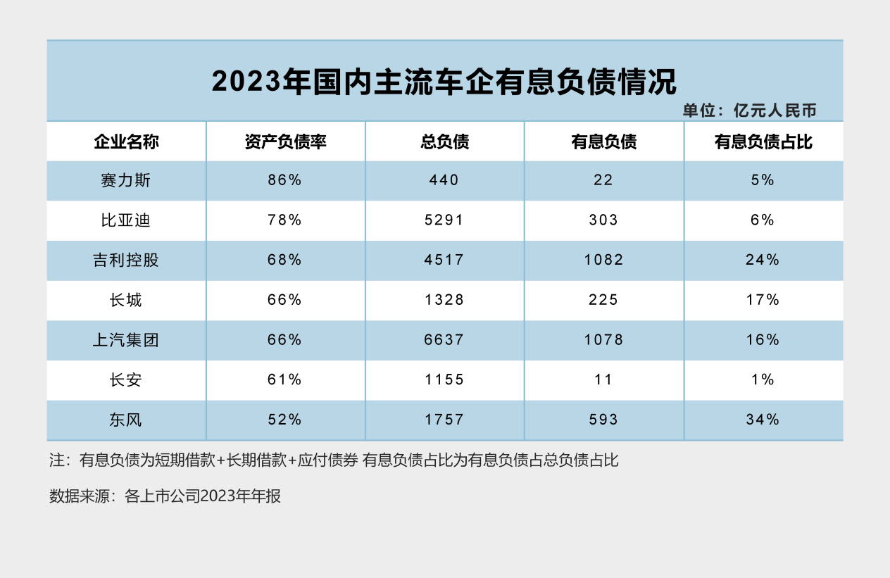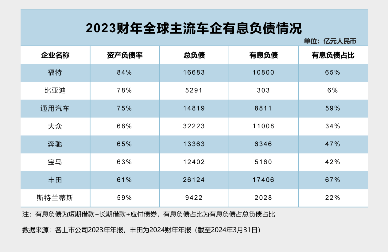 中国汽车发展势头愈发强劲。据最新公布的2024年全球车企销量排名,首次有两家中国车企跻身前十,比亚迪位列第五,吉利位列第十,而海外车企则普遍呈现增长乏力的态势,这也加剧了市场对车企经营风险的担忧,而最容易引发担忧的两个信号是利润下滑和负债增加。 其实,车企的负债究竟是否存在风险,除了关注债务数字本身,还应重点考察债务是否可以带来确定性的增长。 车企高负债的四种原因 高负债是传统车企的共性特征,目前全球主流车企的资产负债率普遍在60%以上,最高的甚至超过80%。 此外,全球车企债务总额也很高。按照最近一个完整财务年度数据,债务总额超过万亿元的车企有大众、丰田、通用、福特、宝马和奔驰,其中大众超过3万亿元,丰田超过2万亿元,远超比亚迪和吉利这两家头部车企。 仔细研究不难发现,车企债务主要有四种:“被动负债”、“主动负债”、“隐性负债”、“危险负债”,对应的风险也大有不同。 四种负债的不同风险 1、被动负债――固定资产投资 这部分负债可以理解为车企运营的刚性成本。只有高速增长的车企,“被动负债”才会高速增长,因为要扩大产能,在厂房、设备等固定资产上进行大额投资。这种情况下,高负债是否有风险就要看新产能是否能如期兑现为销量和收入。 而产能建设投入造成的“被动负债”是否会产生风险,关键要看产品是否热销。像比亚迪,巨额的产能投入换来销量爆发性增长,只要销量能够消化掉新投入的产能,那“被动负债”增长就不是风险,而是增长引擎。 2、主动负债――研发投入 “主动负债”是判断车企债务是否存在风险的关键变量,这部分主要是研发投入。当前汽车产业处在重大转型期,所有车企都在研发上投入巨大。像欧美车企在智能化方面投入巨大,如大众的Cariad软件业务四年累计亏损超600亿元,但并未产生有市场竞争力的成果,这就可能造成风险。 再来看中国车企,以比亚迪为例,从2021年至2024年三季度,研发总投入超1000亿元,这些投入换来了DM-i混动技术的不断迭代、刀片电池、云辇以及天神之眼智能驾驶等众多技术成果。 当高额研发投入可以带来有竞争力的成果,就足以覆盖“主动负债”的风险。 3、隐性负债――应付账款 供应链管理形成的“隐性负债”,主要体现为应付账款和应付票据等无息负债。这部分债务增加容易被认为是车企付款能力不足,造成风险。但应付账款到底高不高,需要和营收规模配合来看。 以中国主流车企最近一个完整财年的数据来看,应付账款占营业收入比例较低的是上汽集团和比亚迪,上汽得益于庞大的存量规模,而比亚迪则主要得益于营收的快速增长。评判应付账款为主的无息负债是否存在风险,不能只看债务多少,更要关注收入增长能否覆盖债务增长。 对于供应商而言,最看重的是合作量的增长,因为中国制造企业更擅长利用规模效应来降本。因此,采购方规模越大,营收越高,对外采购与合作的体量越大,对拉动经济增长的作用越明显。 另外,一家车企的账期相对较短,意味着其供应商能够更快回款,减轻供应商的资金压力,增强供应链稳定性。数据显示,2023年比亚迪的应付账款转换天数为128天,上汽为140天,长城汽车为163天,长安汽车为185天,东风集团股份为226天,赛力斯为313天。 四、危险负债――有息负债 评判“危险负债”的风险程度,关键看有息负债,因为有息负债通常意味着刚性的偿债周期和更高的利息成本。 从有息负债占总负债的比例来看,海外车企的有息负债占比普遍较高,丰田和福特都超过60%,通用汽车也高达59%。 中国车企的有息负债比例普遍更低,这也意味着短期债务风险越低。 中国主要车企中,比亚迪、赛力斯、长安三家的有息负债占比低于10%,特别是比亚迪,快速扩张并没有造成有息负债的快速增长。对比过去数年比亚迪的债务结构,从2022年开始,比亚迪有息负债占比就持续低于10%,最低时不到5%,这样的债务结构几乎不可能造成债务风险。 终极问题:债务是否指向确定性的未来 在汽车产业正在经历重大转变的环境下,单纯靠数字分析判断车企风险程度是不可靠的。判断车企债务风险的关键,在于负债是否帮助车企形成了关键竞争力。当万亿债务流动的方向与产业变革的浪潮同频共振,资产负债表上的债务数字就变成了通往未来的船票。 (责任编辑:姜永丹 )