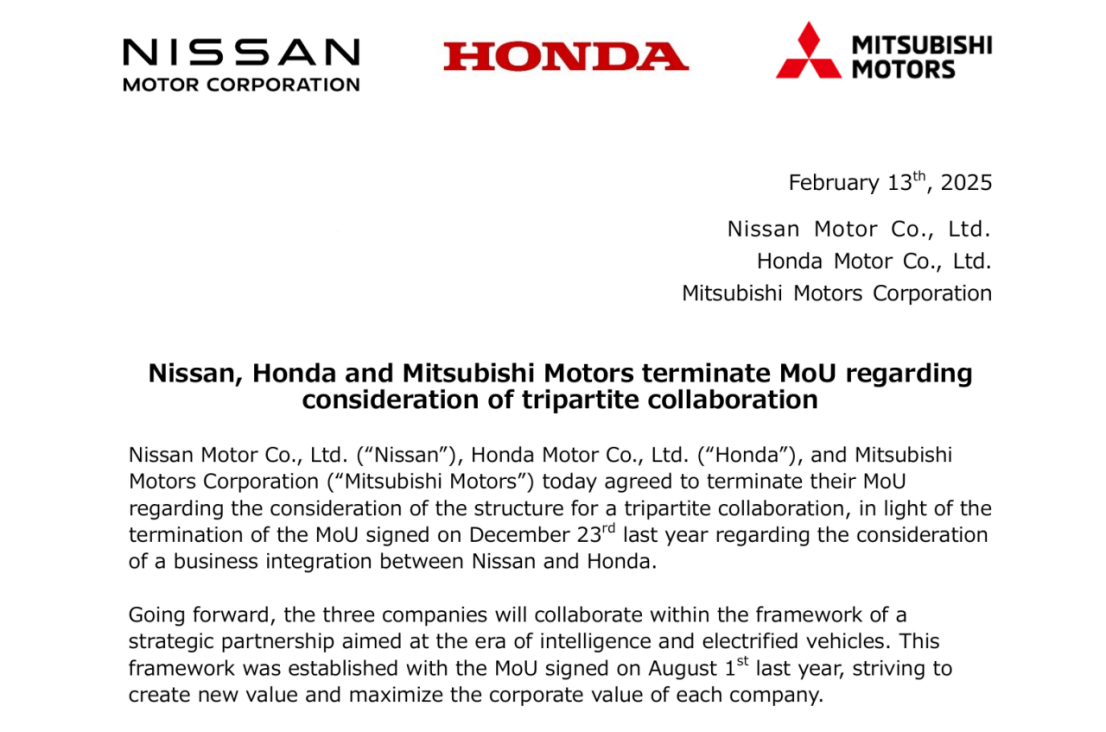 2月13日,本田汽车宣布,同意终止其于2024年12月23日与日产汽车和三菱汽车签署的关于考虑三方合作结构的谅解备忘录。这标志着本田汽车和日产汽车正式取消合并谈判。在北美市场,由于油电混合动力汽车销量的反弹,让 ...