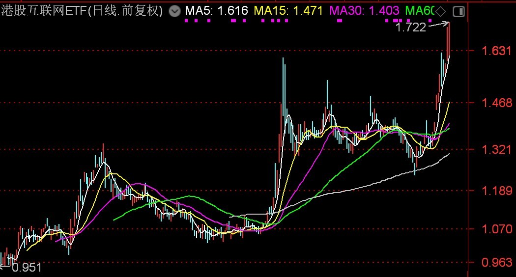 每经记者 叶峰 每经编辑 肖芮冬 港股全天震荡走高,港股互联网ETF大涨逾5%,创上市新高,截至发稿,换手率超900%。 港股互联网ETF跟踪中证港股通互联网指数,该指数从港股通范围内选取30家涉及互联网相关业务的上市公司证券作为指数样本,以反映港股通内互联网主题上市公司证券的整体表现,目前场内有4只ETF跟踪该指数,其余3只涨超3%。 在AI热潮带动下,港股整体投资气氛高涨。有机构表示,当下或许是布局“估值修复+产业升级”双重红利的好时机。随着两会窗口临近及国内AI应用场景加速落地,科技及AI主线不断引来新的驱动力,中长期仍有持续演绎空间。