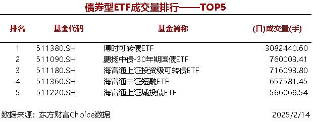 每经AI快讯,据东方财富Choice数据统计,今日共7只股票型ETF成交量超3000万手,华夏中证A500ETF成交5053.38万手,债券型ETF成交量最大的是博时可转债ETF(308.24万手),商品型ETF成交量最大的是华夏饲料豆粕期货ETF(248.82万手)。 ![]() ![]() ![]() |