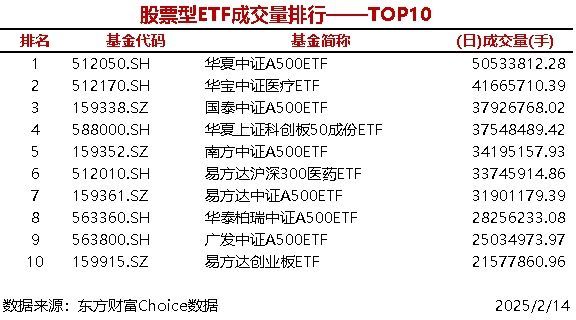 每经AI快讯,据东方财富Choice数据统计,今日共7只股票型ETF成交量超3000万手,华夏中证A500ETF成交5053.38万手,债券型ETF成交量最大的是博时可转债ETF(308.24万手),商品型ETF成交量最大的是华夏饲料豆粕期货ETF ...