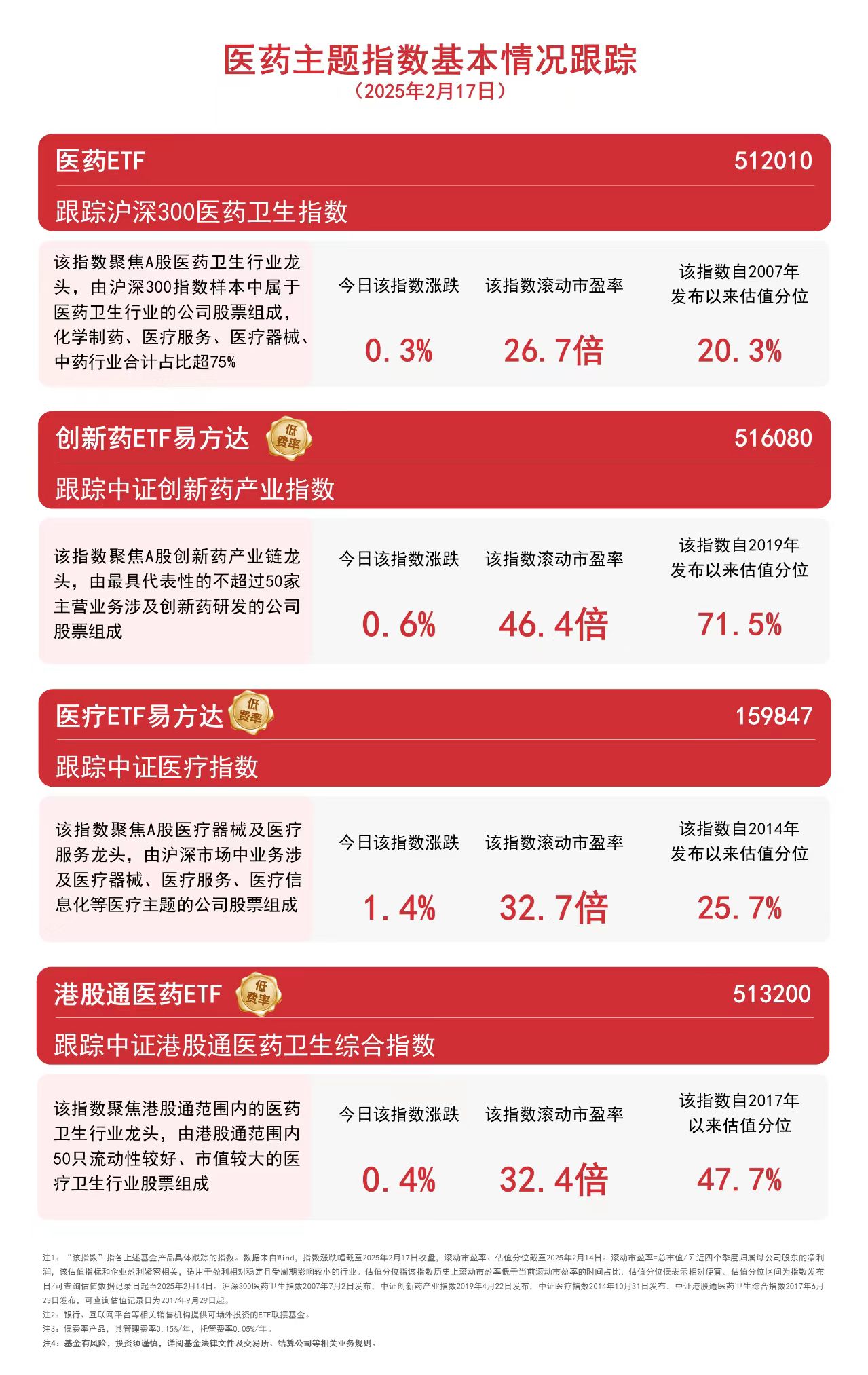 今日,AI医疗概念持续爆发,美年健康、达安基因等多股涨停。指数方面,中证医疗指数上涨1.4%,中证创新药产业指数上涨0.6%,中证港股通医药卫生综合指数上涨0.4%,沪深300医药卫生指数上涨0.3%。 ...
