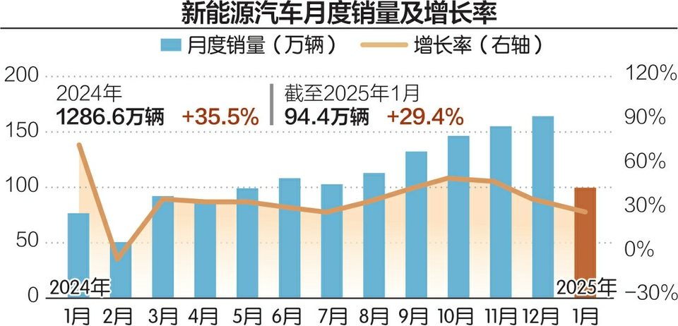 每经记者 李星 每经编辑 孙磊 2月17日,中汽协发布的最新数据显示,1月,我国汽车产销分别完成245万辆和242.3万辆,环比分别下降27.2%和30.5%,产量同比增长1.7%,销量同比下降0.6%。 中国汽车工业协会副秘书长陈士华表示,1月,尽管有效工作日减少,但在“以旧换新”政策、春节经济助力等利好因素驱动下,汽车产量实现小幅增长,销量较同期只微降,行业迎来平稳开局。 中国汽车工业协会专务副秘书长许海东也表示,1月国内汽车表现基本平稳,销量仅出现小幅下滑,为2025年第一季度“开门红”打下坚实的基础。 陈士华强调称,相信随着系列政策的出台落地、深入实施,将有助于汽车行业稳定发展,实现良好开局。 乘用车产销同比双增 虽然有效工作日减少,但1月国内乘用车市场依然延续去年良好表现,产销同比双增。中汽协数据显示,1月,我国乘用车产销分别完成215.1万辆和213.3万辆,同比分别增长3.3%和0.8%。在乘用车主要品种中,与上年同期相比,1月的基本型乘用车(轿车)和运动型多用途乘用车(SUV)销量微降,多功能乘用车(MPV)销量实现两位数增长,交叉型乘用车销量快速增长。 在1月的乘用车市场中,中国品牌乘用车共销售145.9万辆,环比下降29.3%,同比增长14.1%,占乘用车销售总量的68.4%,销量占有率比上年同期提升8个百分点。在主要外国品牌中,与上月相比,五大主要品牌销量均呈两位数下降;与上年同期相比,法系品牌销量呈两位数增长,韩系品牌销量小幅增长,其他三大主要品牌销量均呈不同程度下降。 与乘用车产销双增不同,1月的商用车市场表现依旧疲弱。中汽协数据显示,1月,商用车产销分别完成29.9万辆和29万辆,环比分别下降17.2%和21.2%,同比分别下降8.6%和10.3%。在商用车主要品种中,与上月相比,客车和货车产销均呈两位数下降;与上年同期相比,客车产销小幅增长,货车产销呈两位数下降。 1月,商用车国内市场需求偏弱,出口同比略增长。中汽协数据显示,1月,商用车国内销量21.6万辆,环比下降25.7%,同比下降13.8%;出口7.5万辆,环比下降4.5%,同比增长1.5%。 2024年,商用车累计销售387.3万辆,较中汽协此前预测的420万辆年销目标少了32.7万辆。尽管如此,中汽协对于2025年国内商用车市场走势依然给出了积极预期。“中汽协预测,2025年,商用车市场将保持适当正增长,总销量预计能达400万辆,同比增长3.3%。”许海东称。 新能源车产量同比增29% 作为国内车市增长的重要助力,1月国内新能源汽车继续保持较快增长。中汽协数据显示,1月,我国新能源汽车产销分别完成101.5万辆和94.4万辆,同比分别增长29%和29.4%,新能源汽车新车销量达到汽车新车总销量的38.9%。 分类型来看,1月,我国纯电动汽车共销售57.4万辆,同比增长29.1%;插电式混合动力汽车共销售37万辆,同比增长30%。“插电式混合动力汽车增长迅速,成为带动我国新能源汽车增长的新动能。”陈士华曾表示。 1月,新能源汽车国内销量为79.3万辆,同比增长26.2%。其中,新能源乘用车国内销量75.6万辆,同比增长25.9%;新能源商用车国内销量为3.7万辆,同比增长31.4%。 1月,我国新能源汽车销量排名前十位的企业集团销量合计为80.3万辆,同比增长32.3%,占新能源汽车销售总量的85.1%,高于上年同期1.9个百分点。 对于2025年我国新能源汽车表现,中汽协预计全年总销量为1600万辆,同比增长24.4%。 作为我国车市另一增长点,1月汽车出口表现持续良好。中汽协数据显示,1月,中国汽车出口47万辆,环比下降6.8%,同比增长6.1%。其中,燃油车出口32万辆,环比下降13.8%,同比下降6.6%;新能源汽车出口15万辆,环比增长12.6%,同比增长49.6%。 1月,整车前十企业中,奇瑞汽车出口量达8.1万辆,同比下降10.3%,占总出口量的17.2%。与上年同期相比,比亚迪出口增速最为显著,出口达7万辆,同比增长91.5%。 值得注意的是,虽然我国汽车出口在1月迎来“开门红”,但中汽协对于其在2025年的表现给出了增速放缓的预期。中汽协方面预计,2025年我国汽车出口约为620万辆,同比增长5.8%。 许海东解释称,2025年,中国汽车出口将面临一些比较大的压力和市场变化,包括欧盟加征关税等外部环境压力加大。基于多方因素考虑,中汽协对2025年的我国汽车出口量预测较为谨慎。 (责任编辑:王治强 HF013)