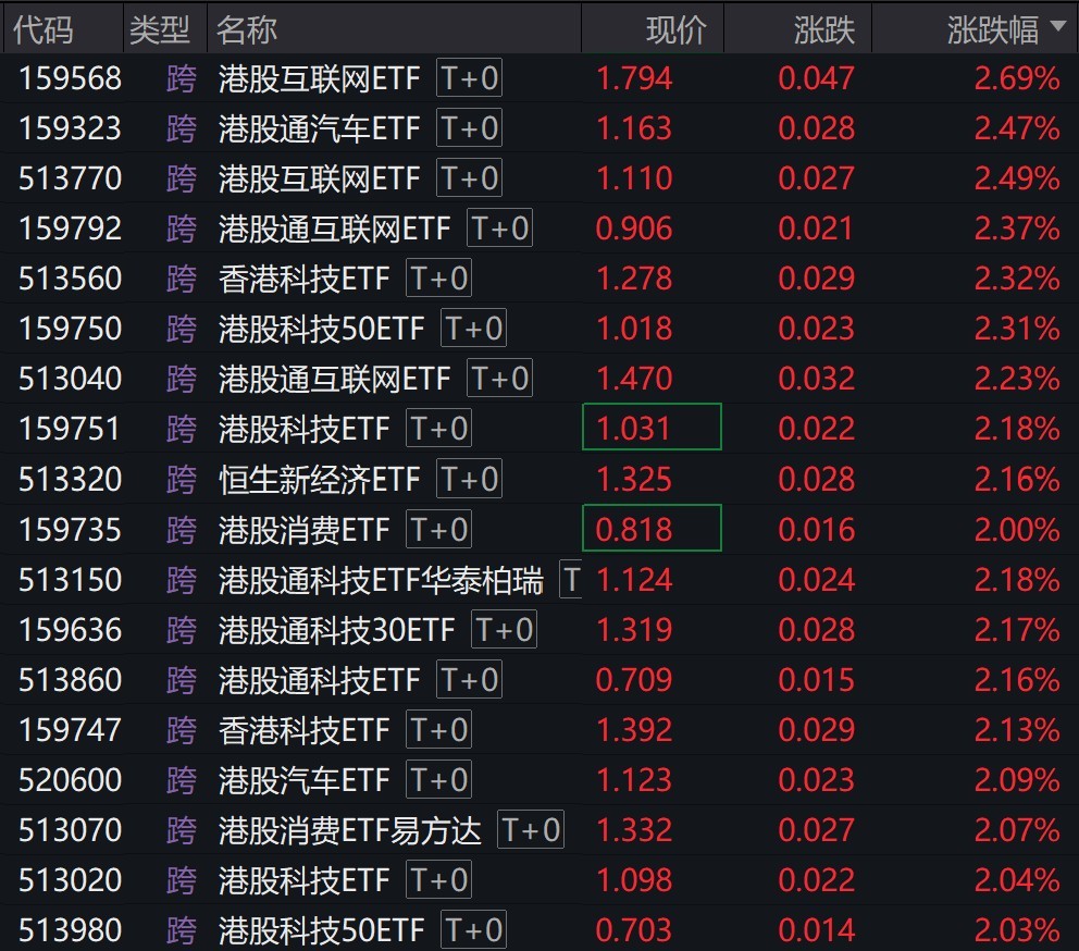 每经记者 叶峰 每经编辑 肖芮冬 港股早盘走强,多只港股相关ETF大涨逾2%。 有券商表示,短期内,随着AI应用场景逐渐落地,投资者情绪较为乐观。随着新质生产力发展和国内促消费政策实施,港股公司 ...