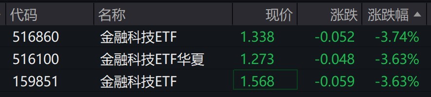 每经记者 叶峰 每经编辑 肖芮冬 金融科技概念股走低,银之杰跌超5%,恒生电子、润和软件跌超4%,同花顺、指南针、赢时胜跌超3%。 受盘面影响,3只跟踪中证金融科技主题指数的金融科技ETF集体跌逾3 ...