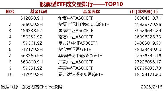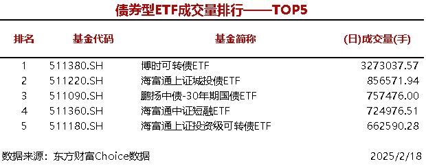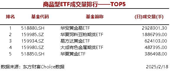 每经AI快讯,据东方财富Choice数据统计,今日共5只股票型ETF成交量超3000万手,华夏中证A500ETF成交5000.43万手,债券型ETF成交量最大的是博时可转债ETF(327.3万手),商品型ETF成交量最大的是华安黄金易ETF(292.8 ...