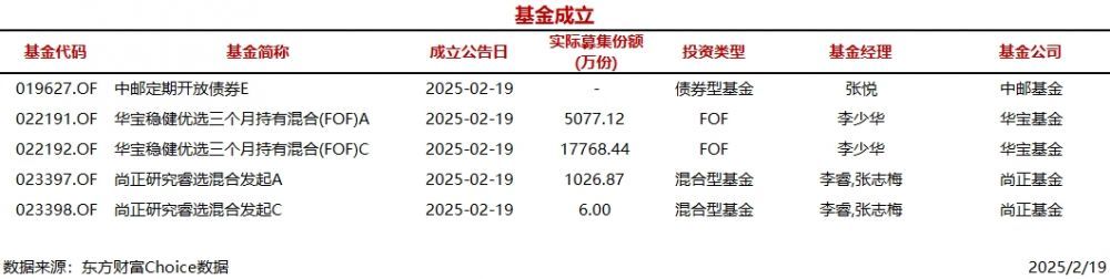 每经AI快讯,据东方财富Choice数据统计,今日共有5只基金公告成立(A/C类分开计算),包括2只FOF、2只混合型基金、1只债券型基金。