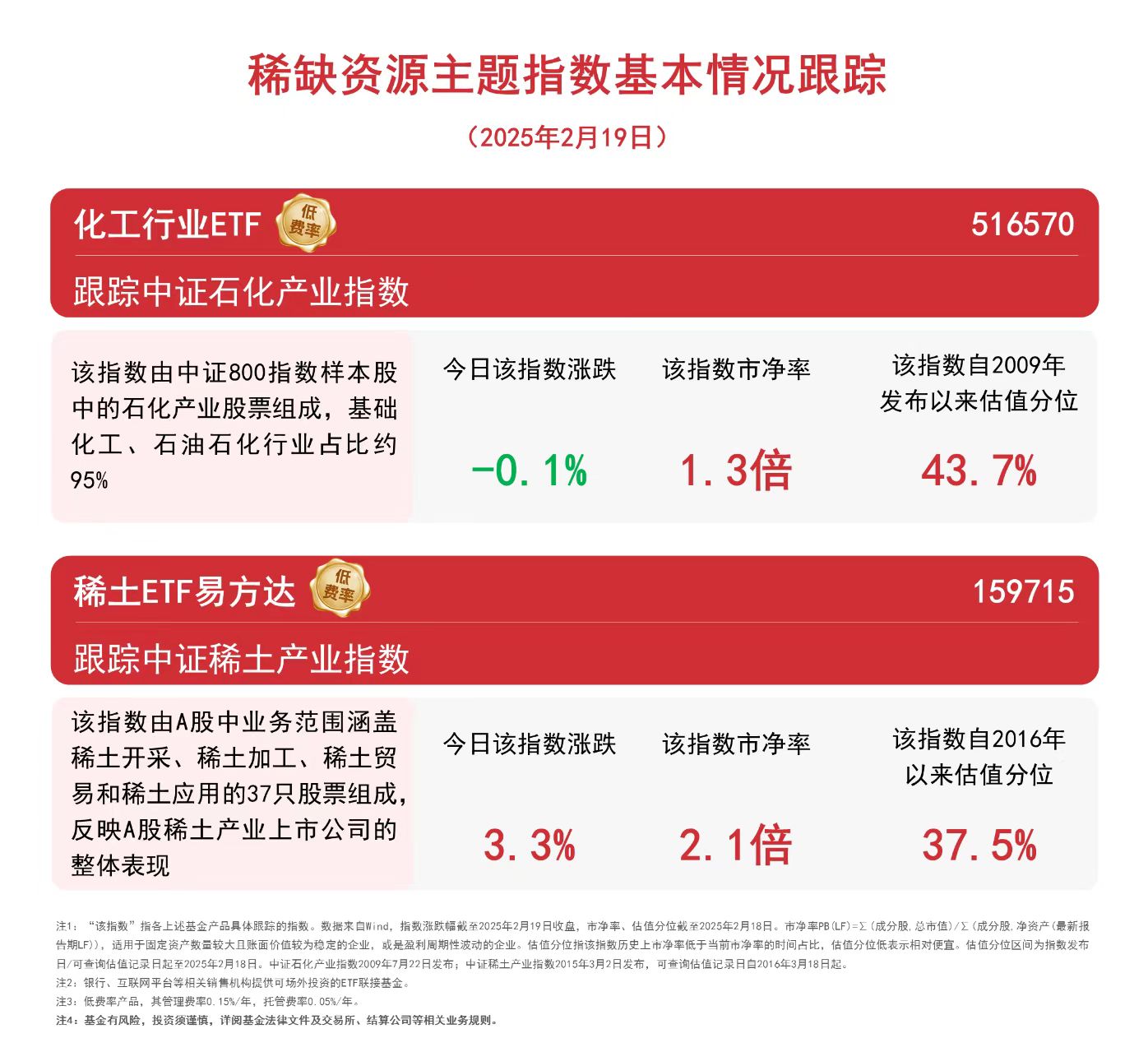 指数今日走势分化,关注稀土ETF易方达(159715)和化工行业ETF(516570)等产品未来动态 ...