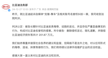 2月19日,比亚迪新闻打假办宣布,对8位“黑公关”相关信息提供人给予1-10万元不等的奖励,同时,针对1位具有重大价值的证据提供人奖励100万元!这表明了比亚迪坚决打击“黑公关”的决心。 近年来,随着我国新能源汽车行业的迅猛发展,产销量持续创造新高,一些别有用心的“黑媒体”、“黑公关”势力频繁活动,通过散布虚假信息、恶意诋毁等手段,试图破坏我国新能源汽车企业的声誉,扰乱市场秩序。近期,中国新闻网报道,有组织开始将我国新能源汽车领域相关的科研和制造企业作为重点目标,进行长期的网络攻击,为此,必须高度警惕。 “黑公关”、“黑媒体”乱象不仅有违国家法律法规,还严重影响汽车行业的健康发展。比亚迪集团品牌及公关处总经理李云飞在一次公开活动中回应:“比亚迪接受媒体的批评和监督,但对黑公关和黑媒体,一追到底,绝不姑息!” 李云飞表示,“有时候,有媒体或者自媒体基于事实报导,批评我们,都没问题。还有些媒体不了解情况,出现一些误解性的报道,我们也都能接受。但如果有些媒体或自媒体恶意的揣着明白装糊涂,为了黑而黑,通过一些不实的和误导性的报道和信息,长期针对比亚迪,诋毁比亚迪。比如说一个礼拜有七天,至少五个工作日都在黑比亚迪,这个是不能接受也不能容忍的。” 目前,包括比亚迪在内的许多车企,都已采取行动反击“黑公关”。在2021年,比亚迪就宣布悬赏5-100万元向全网征集线索。为进一步打击和震慑“黑公关”,此后,比亚迪把举报奖励提升至5-500万元,长期有效。 据悉,在近两年的时间里,比亚迪累计起诉20余个“黑号”,同时对30多个重点“黑号”进行密切关注,对其发布的内容及评论区持续做证据保全。值得关注的是,2024年年底,比亚迪起诉自媒体博主“龙猪-集车”的名誉纠纷权案胜诉,其长期侮辱、诋毁比亚迪,构成名誉侵权,法院判决“龙猪-集车”删除侵权言论、公开赔礼道歉,并赔偿201.87万元。 当前,中国新能源汽车行业正迈入高质量发展阶段,清朗健康的市场与舆论环境对于全行业的发展至关重要。比亚迪频频对“黑公关”重拳出击,这不只是捍卫自身合法权益,也有利于中国新能源汽车的健康发展。 (责任编辑:矫h )