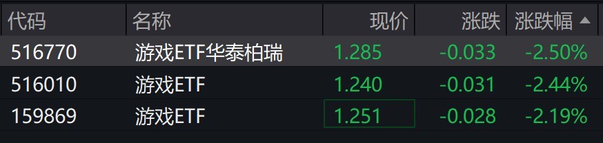 每经记者 叶峰 每经编辑 肖芮冬 游戏概念股走低,光线传媒跌超5%,昆仑万维跌超3%,恺英网络、神州泰岳、掌趣科技、完美世界跌超2%。 受重仓股下跌影响,跟踪中证动漫游戏指数的ETF跌逾2%。 中证 ...