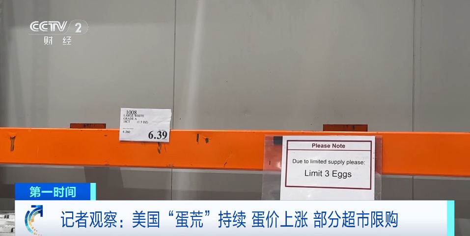 近期,由于禽流感疫情持续蔓延,美国鸡蛋平均价格已逼近历史最高水平,一些地区的供应变得紧张。当地时间19日,本台记者走访了位于弗吉尼亚州的一家仓储式连锁超市,实地探查了一下“蛋荒”情况。 ...