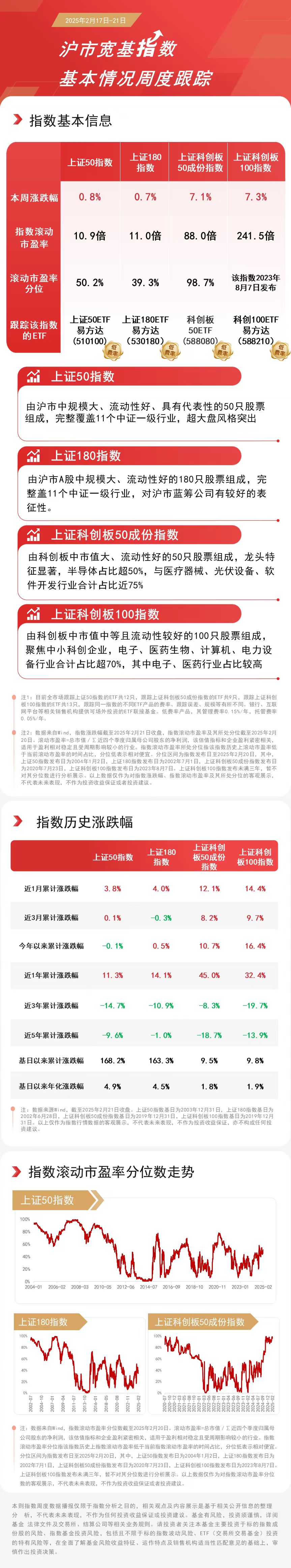 本周沪市震荡上涨,科技板块表现亮眼。科创100指数上涨7.3%,上证科创板50成份指数上涨7.1%,上证50指数上涨0.8%,上证180指数上涨0.7%。