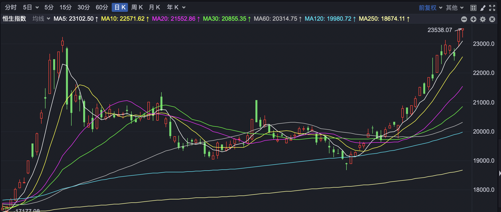 每经记者 曾子建 每经编辑 肖芮冬 2月24日早盘,港股市场小幅震荡。截至发稿前,恒生指数报23362点,下跌0.48%;恒生科技指数报5800点,下跌1.02%。 盘面上,港股机器人概念股走强。其中,地平线机器人涨超10%,优必选涨超5%,微创机器人涨超1%。此外,小鹏汽车涨超1%,科网股方面,腾讯控股高开回落,截至发稿前跌近1%,阿里巴巴微涨0.14%,小米涨近1%。此外,快手跌超2%,联想集团跌超3%。 跨境ETF方面,港股科技50ETF涨近8%,溢价率已超过8%。港股国企ETF涨超2%,港股科技30ETF、中概互联ETF、港股非银ETF、恒生央企ETF等涨超1%。 |
