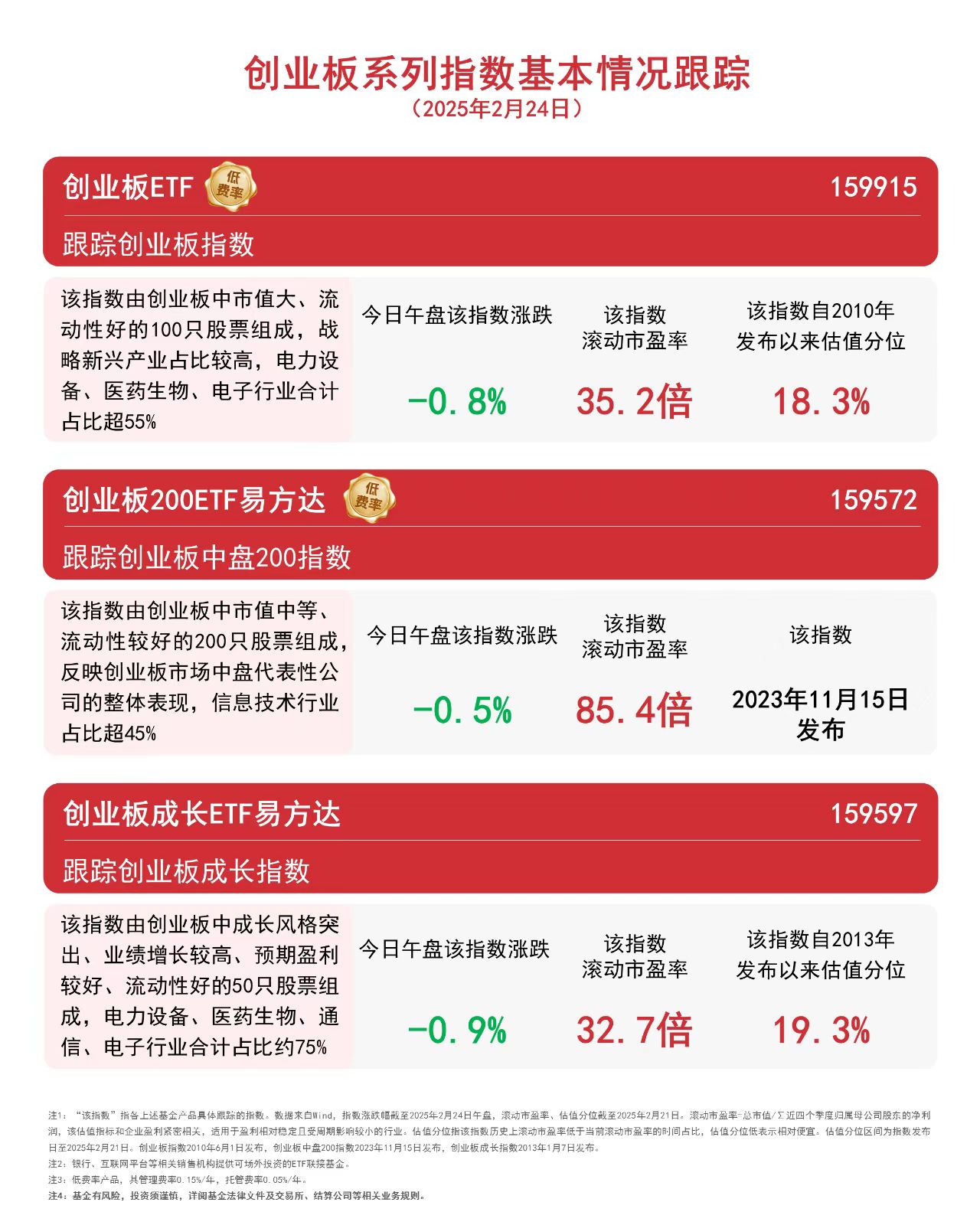 创业板早盘弱势震荡,盘面上,医疗服务、铜缆高速连接等概念回调,AI概念股走势分化。截至午盘,创业板中盘200指数下跌0.5%,创业板指数下跌0.8%,创业板成长指数下跌0.9%。 ...