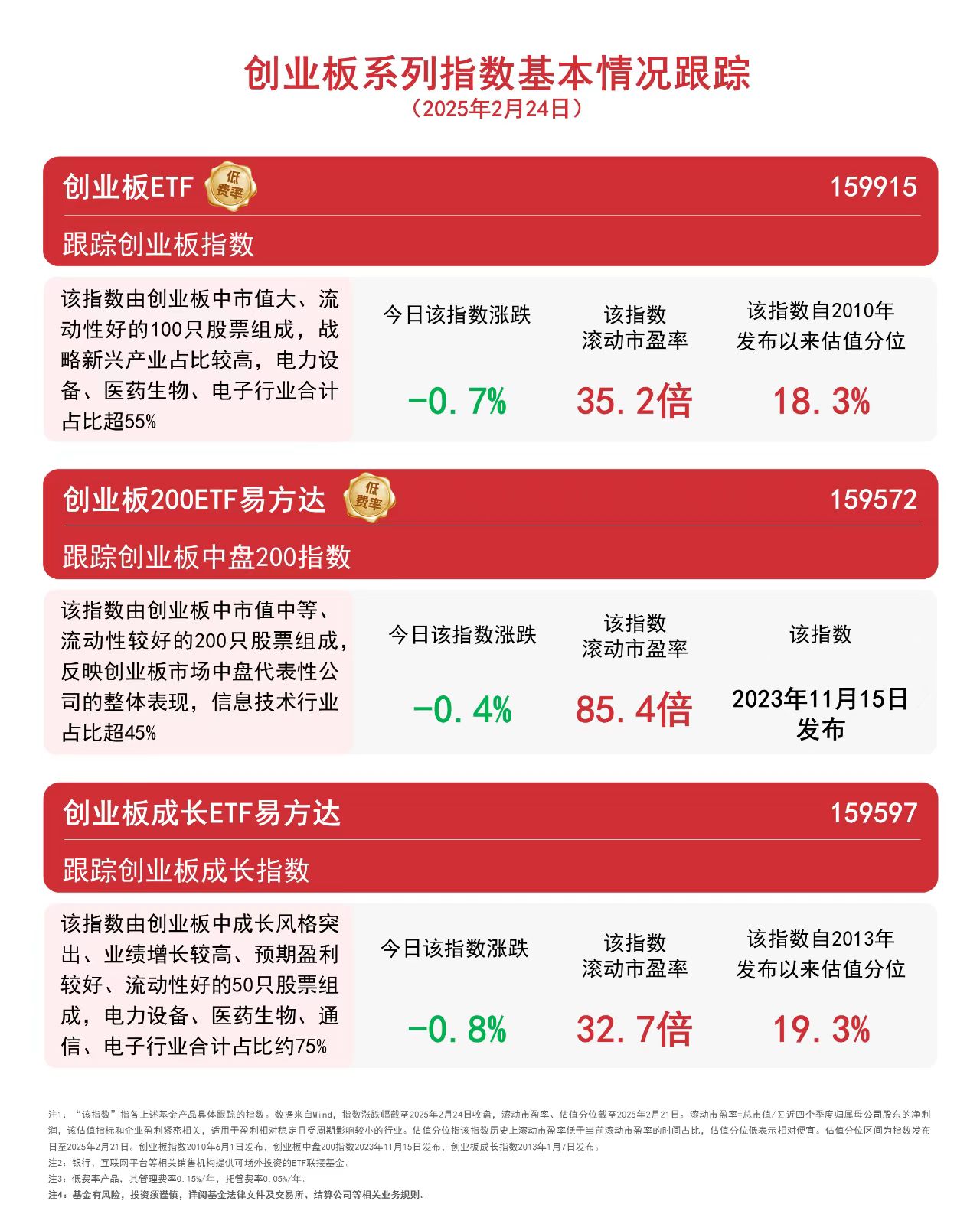 截至收盘,创业板中盘200指数下跌0.4%,创业板指数下跌0.7%,创业板成长指数下跌0.8%。 创业板聚焦成长型创新创业企业,新兴产业、高新技术企业占比较高。目前,创业板成长指数、创业板指数滚动市盈率分别为32.7倍和 ...