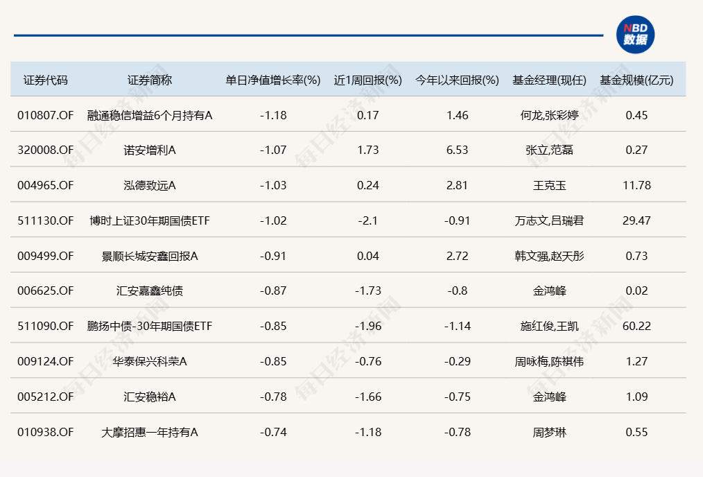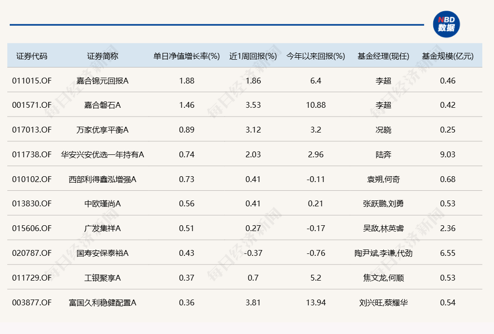 每经记者 肖芮冬 每经编辑 赵云 2月24日,市场全天震荡调整,三大指数小幅下跌。板块方面,机场航空、工程机械、农业、国资云等板块涨幅居前,智谱AI、教育、元件、CPO等板块跌幅居前。个股涨多跌少,全市场超2700只个股上涨。沪深两市全天成交额2.08万亿元,较上个交易日缩量1121亿。 下面一起来看今天公募基金的表现。 (注:榜单1、2仅选取灵活配置型、偏股混合型和普通股票型三类产品作为主动基金的代表,纳入统计;债基相关榜单包括各类主、被动债券型基金) 1.单日涨幅榜 2.单日跌幅榜 3.单日债基涨跌幅榜 4.晚间值得关注的消息 【中俄元首通话】(详情→)