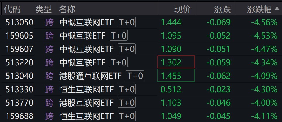 每经记者 叶峰 每经编辑 肖芮冬 港股早盘大幅低开,恒生科技指数跌逾3%,昨夜纳斯达克中国金龙指数跌逾5%。 受盘面影响,多只中概互联网、港股互联网相关ETF跌逾4%。 有券商表示,中长期看,港股 ...