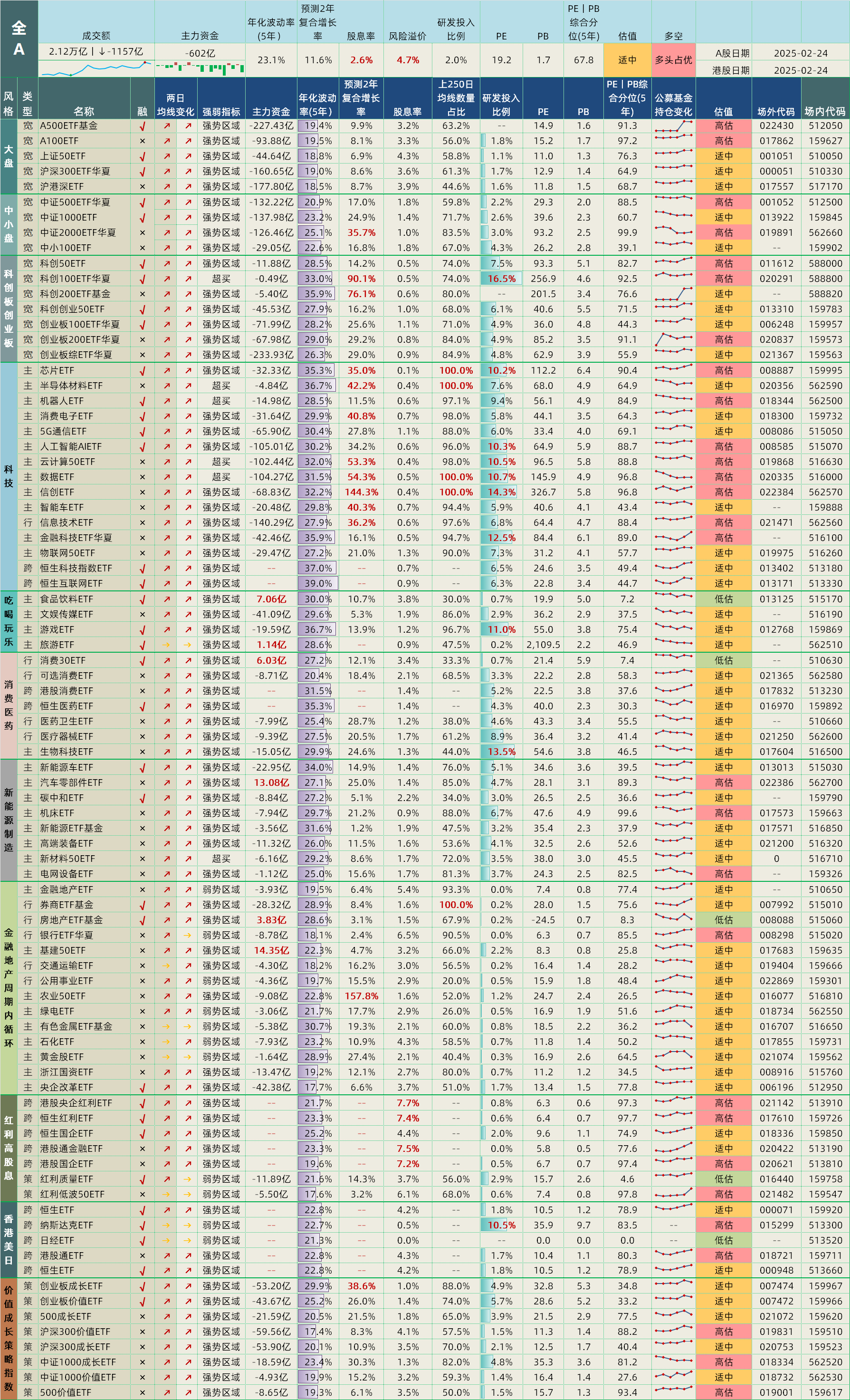 昨日A股成交额2.11万亿,较前一日回落1156亿元。分内外资来看,北向成交2427亿元,占A股成交额的11.47%,成交与前一日持平;内资成交1.87万亿,缩量5.8%。 主力资金昨日流出602亿元,从行业角度来看,虽然行情有一定“高切低”现象,但低位板块并未承接流出资金,食品饮料、建筑装饰、材料、房地产小幅流入。计算机、电子、传媒大幅流出。 从多空分界线来看,全A指数仍在多头区域。热度主要集中在持仓股票站上250日均线比例较大、两年复合增长率较高、研发投入比例高的科技板块。高切低可以适当关注新能源、内循环板块。 相关ETF: 科创50ETF:588000 食品饮料ETF:515170 消费30ETF:510630 |