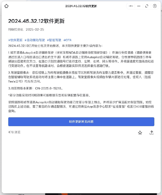 0特斯拉中国开始推送城市 Autopilot,优化现有NOA自动辅助导航驾驶功能。Autopilot自动辅助驾驶可在通行受控道路和城市道路上引导车辆驾驶,识别交通信号灯和进行变道动作。特斯拉更新了驾驶舱摄像头,可提醒驾驶员保 ...