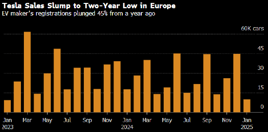 0特斯拉在欧洲1月销量暴跌,仅为9945辆,同比下降45%。而欧洲整体电动汽车销量激增37%,德国和英国增长最快。特斯拉正在改造Model Y SUV生产线,首席执行官马斯克的政治立场引发争议,支持极右翼政党并质疑欧洲政府。 ...
