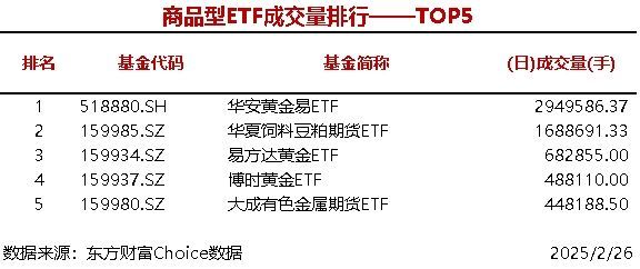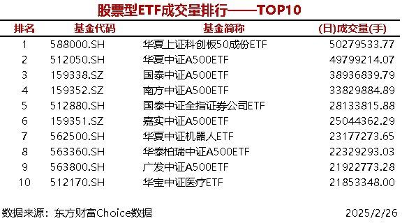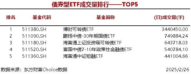每经AI快讯,据东方财富Choice数据统计,今日共4只股票型ETF成交量超3000万手,华夏上证科创板50成份ETF成交5027.95万手,债券型ETF成交量最大的是博时可转债ETF(344.05万手),商品型ETF成交量最大的是华安黄金易E ...