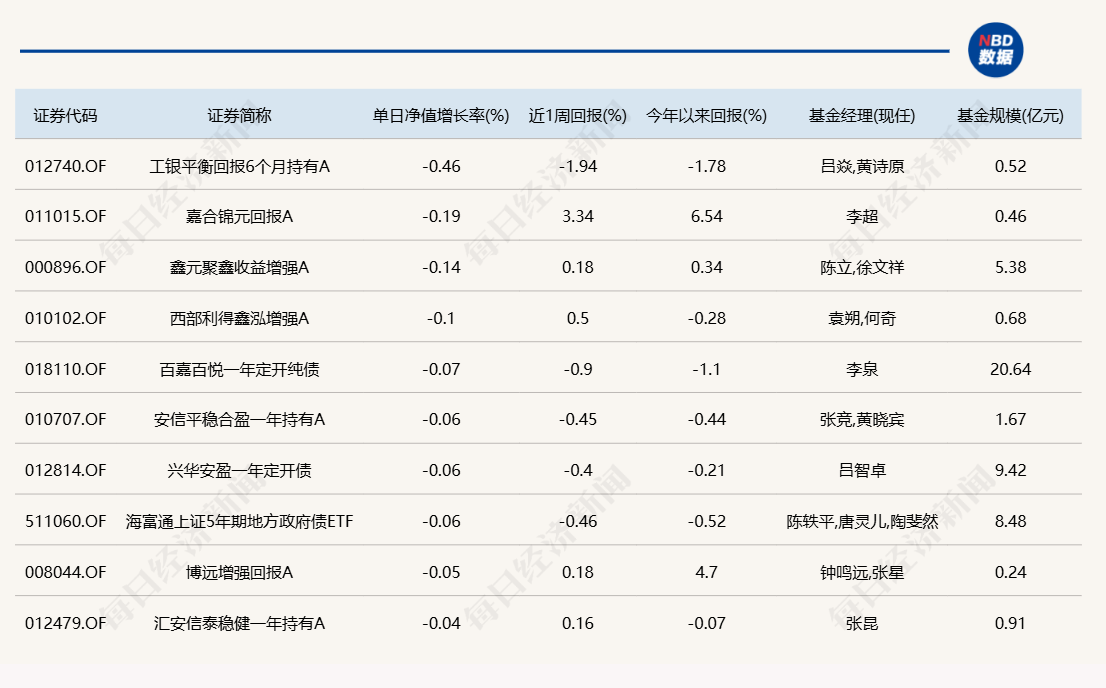 每经记者 肖芮冬 每经编辑 赵云 2月26日,市场全天震荡反弹,创业板指领涨。板块方面,钢铁、光伏、证券、人形机器人等板块涨幅居前,农业、机场、贵金属等板块跌幅居前。全市场超4200只个股上涨。沪深两市全天成交额1.94万亿元,较上个交易日放量416亿。 下面一起来看今天公募基金的表现。 (注:榜单1、2仅选取灵活配置型、偏股混合型和普通股票型三类产品作为主动基金的代表,纳入统计;债基相关榜单包括各类主、被动债券型基金) 1.单日涨幅榜 2.单日跌幅榜 3.单日债基涨跌幅榜 4.晚间值得关注的消息